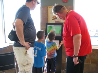 We arrived in North Platte around 5:30 or so and immediately went to the North Platte Railroad Yard Viewing Tower. Even I had to admit that it was pretty cool. We went to the 7th floor where they have a view of this railroad yard, the biggest in the country. There were lots of signs explaining how many trains go through, the history of the Orphan Trains, and the Transcontinental Railroad.