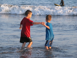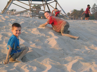 We ate dinner (pizza for the boys, ravioli for me, and a gyro for Jeff), then headed to Coronado Beach to watch the sun set. Very swanky houses, but the beach itself was public so we parked and went to explore. The boys had a blast playing in the waves and then in the sand. I wish we lived closer to the ocean.