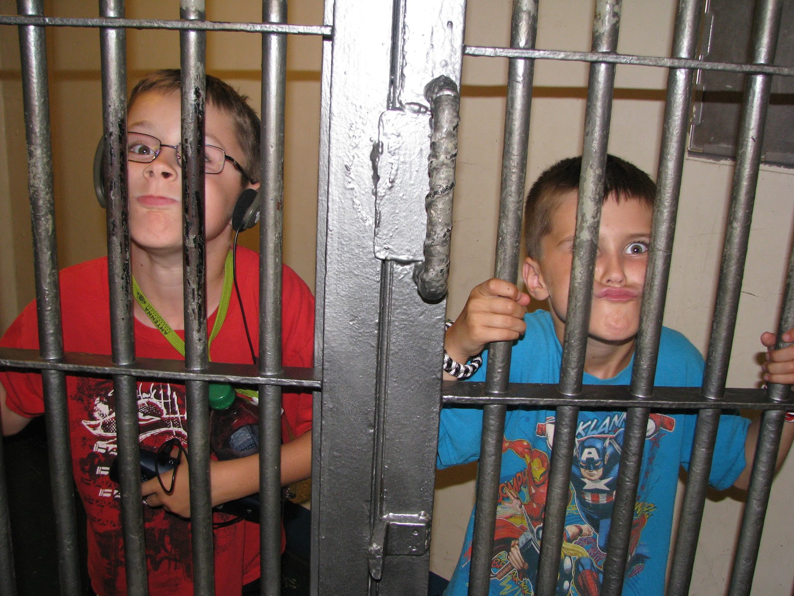 | The boys didn’t know what to make of the Human Robot Statue. Put money in his tip jar and he moved and sounded like a robot. |