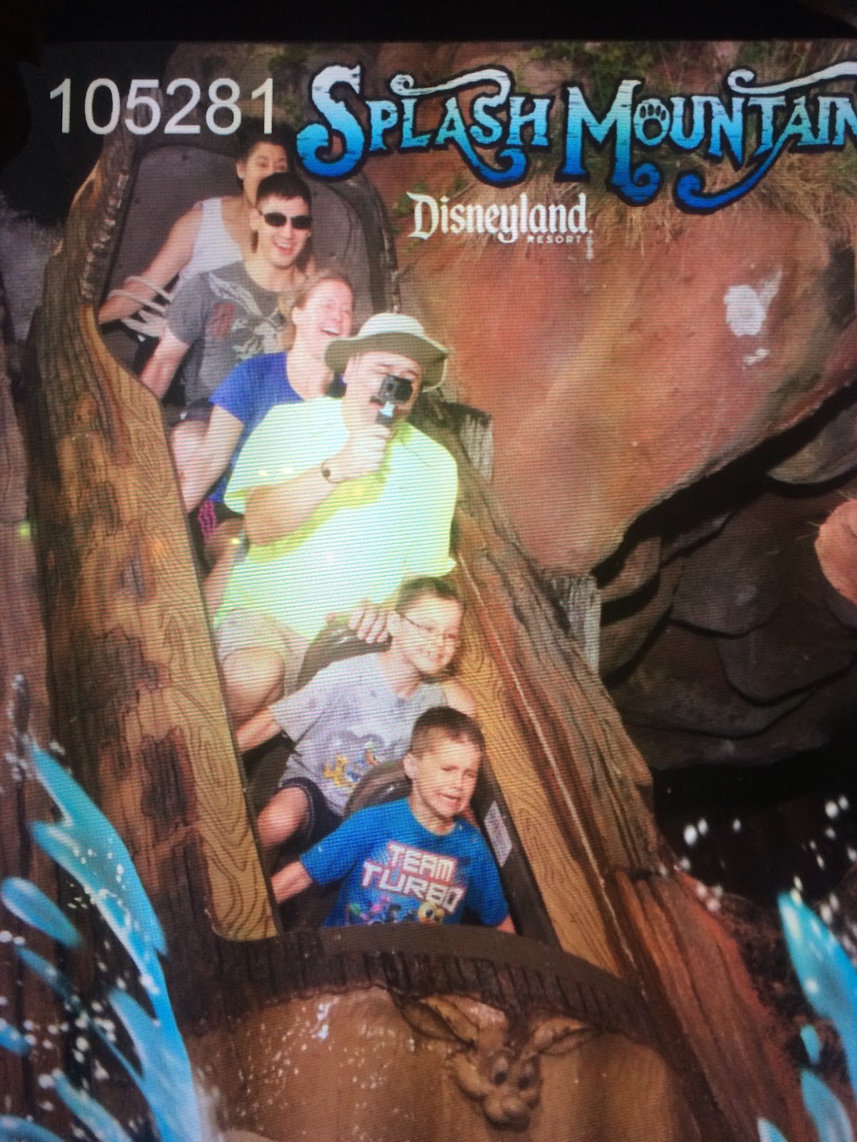 Since we were on a roll, we headed over to Splash Mountain. We waited about 20 minutes for that one and it was a fun one. Disney takes a picture of your face as you go down the “waterfall”. Carson’s face is priceless!