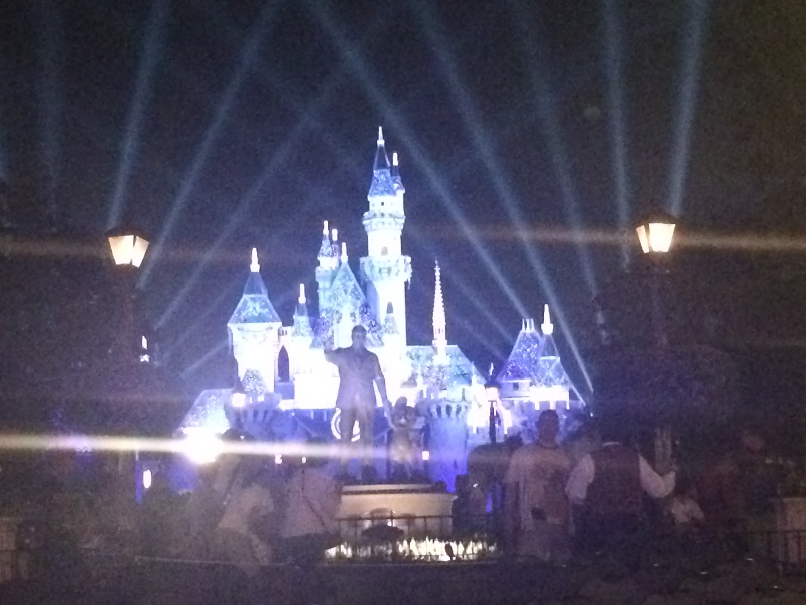 We also stayed for the fireworks and got to see them set off with the It’s a Small World as the backdrop. Everyone was standing however, so we had to each hold a kid so they could see the projection on the buildings. No hands for pictures. It was pretty cool how they tied in all the Disney movies, both new and old, and finished off with “snow” falling all around us (in 90 degree weather).