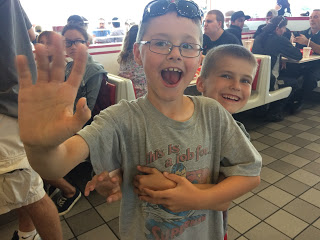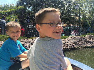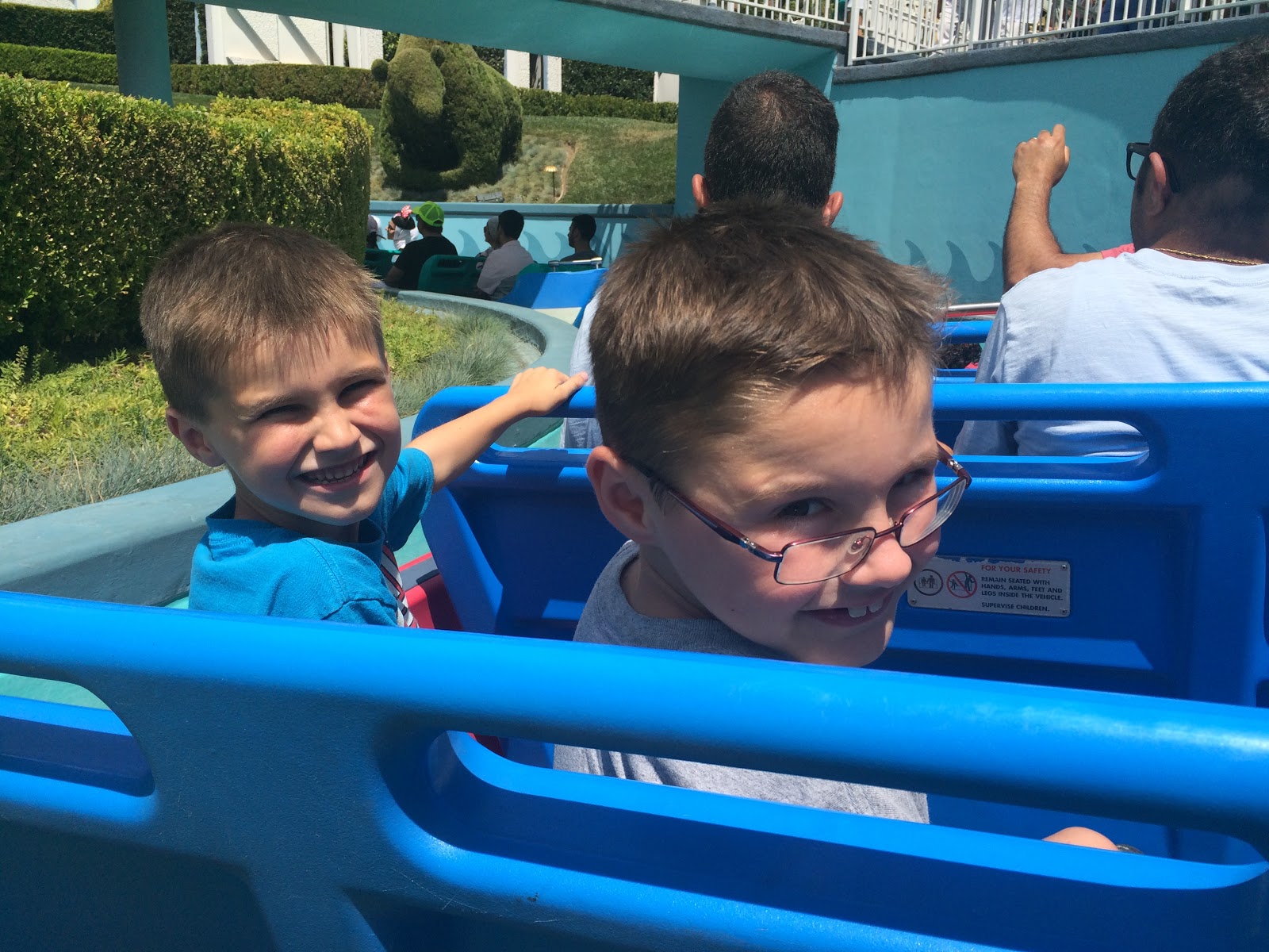 Carson loved the Storybook Land Canal Boats because he thought it was hilarious to be swallowed up by the big blue whale. The boys got chosen to sit on the front of the boat so they got a really good view of all the little storybook scenes during the ride.