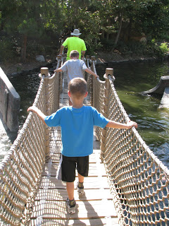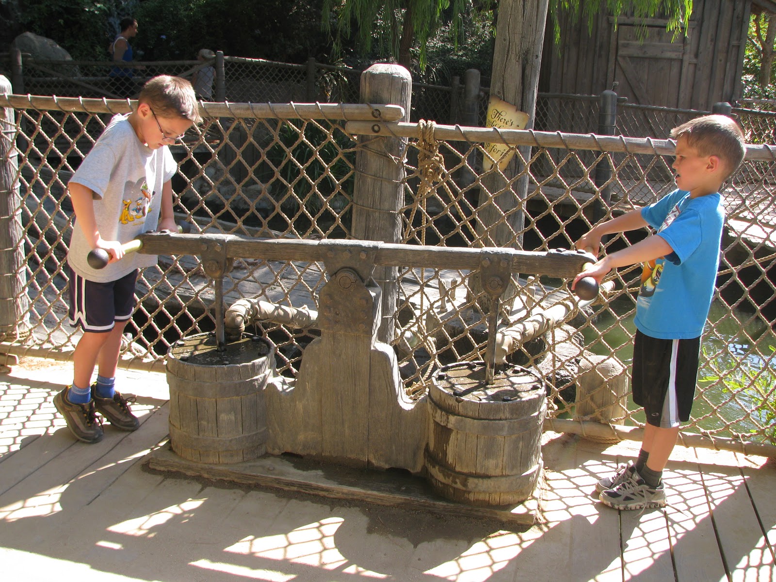 According to the apps that we downloaded, the lines were getting pretty long, so we decided to do some activities that didn’t require waiting in lines. We went to Tom Sawyer’s Island and explored. Jeff has great memories of doing this when he was a kid and I think he still had just as much fun as our own boys did exploring the island.