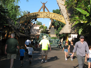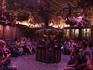 The sun was starting to go down so we darted back to Adventureland to climb the tree house which used to be the Swiss Family Robinson’s Treehouse but is now called Tarzan’s Treehouse. Then we went to the Magical Tiki Room (after I had a Dole Whip, yum!). Those birds are seriously creepy but hilarious! I don’t think the boys were too impressed with them though.