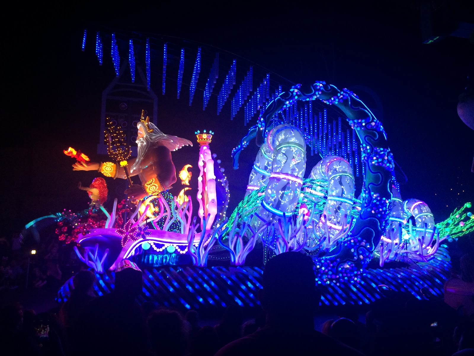 The parade was just getting ready to start and since we chose not to sit and wait at the curb for hours, we were very lucky to get a spot at the top of a small set of stairs and actually had a great view. The light parade is so amazing and fun! It was a beautiful end to a perfect day.