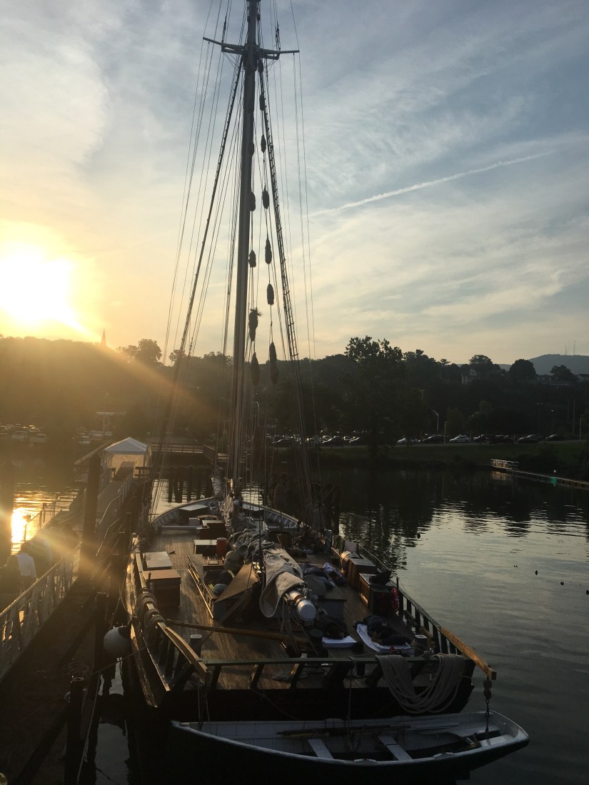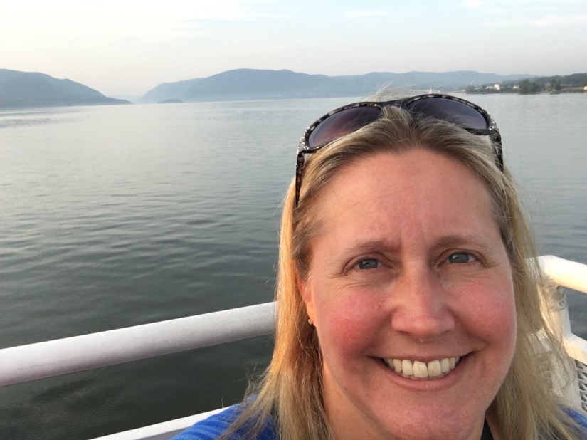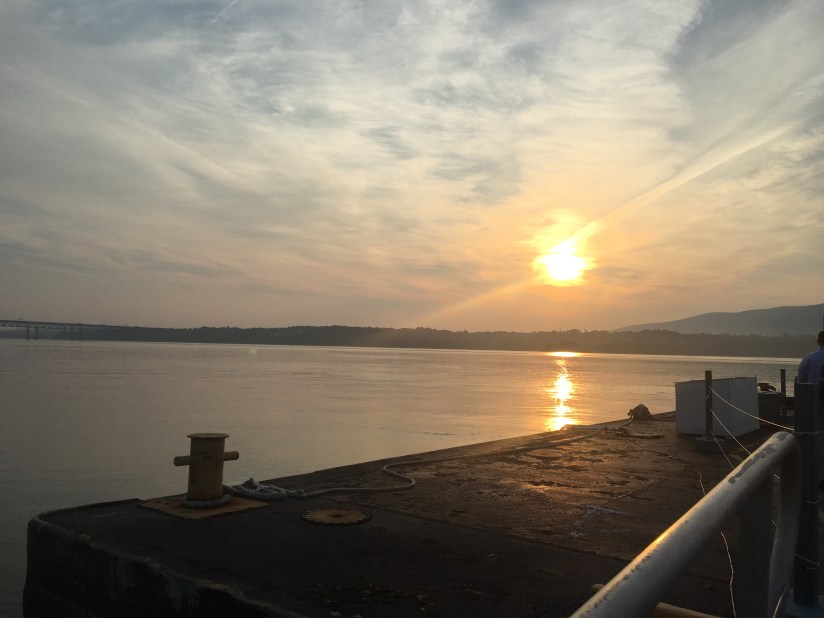 We left a little after 6 am to drive to the ferry station so we could take the ferry across the Hudson River. We crossed as the sun was rising over the river and hills. Jeff is amazing in his planning, isn’t he?