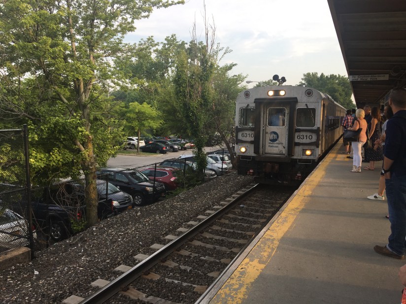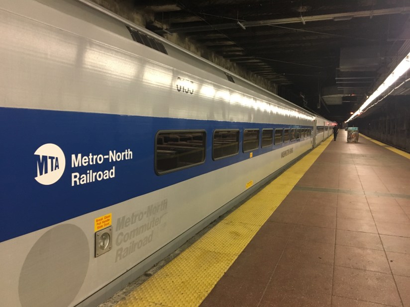 Then we walked across the street and hopped on the train. This express train is supposed to have a beautiful view as it follows the Hudson River. Unfortunately, great planning can be easily foiled when the only seats left on the train are the ones in the corner that does not have windows. You can see our lack of view. Oh well!