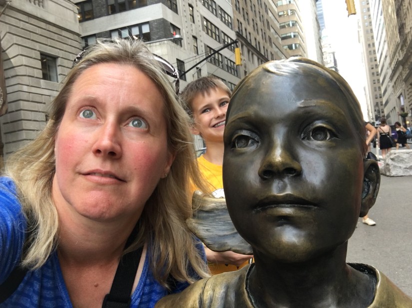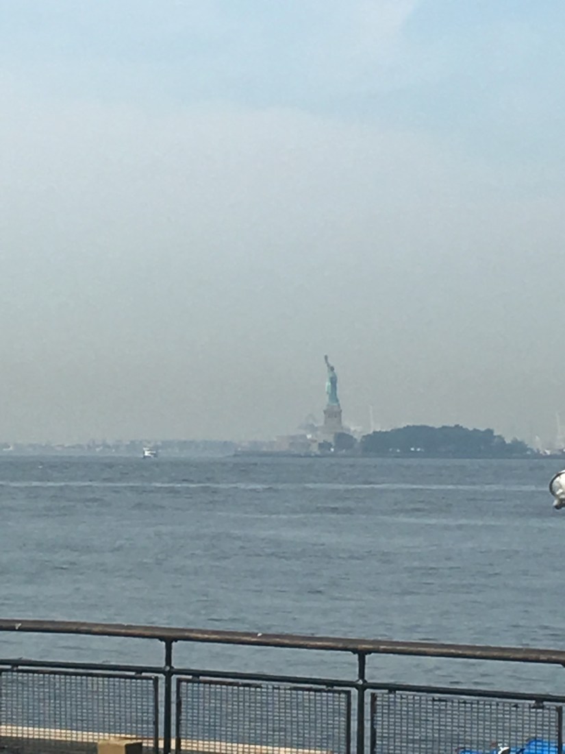 We made it to Wall Street and saw the Bull and I got a couple photos with the Fearless Girl. We continued down to the water to see the Statue of Liberty. We weren’t taking the time this trip to stand in line and take a ferry to the island, but we did take a few photos from the shore.