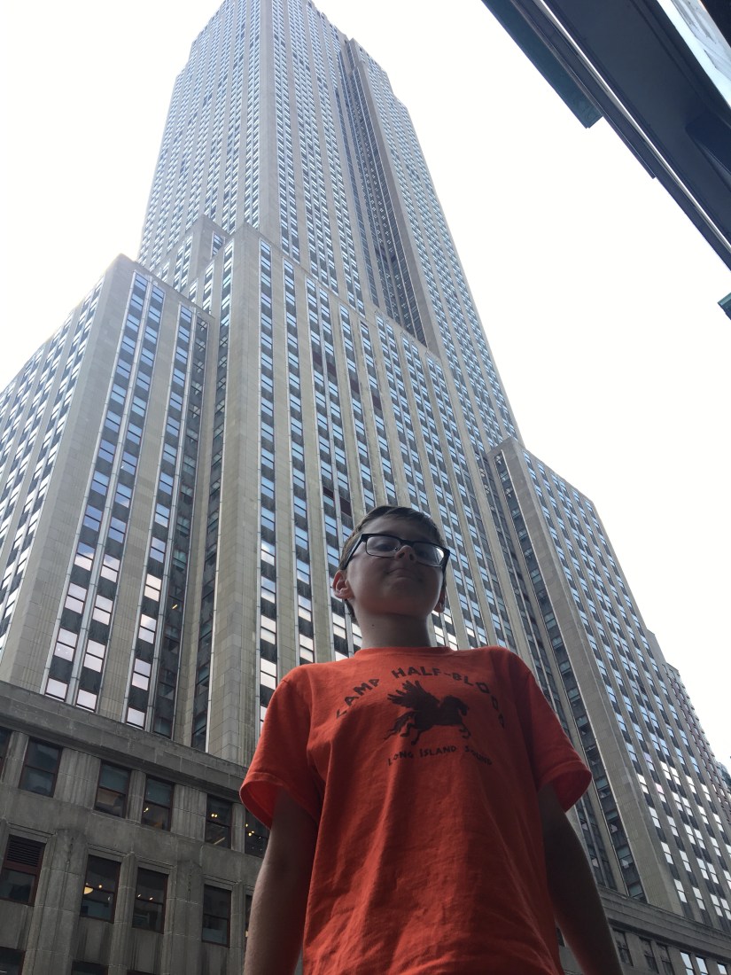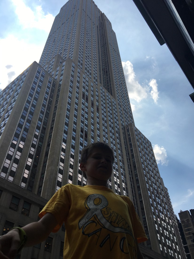 Next we headed to the NBC studios. We wanted to show the boys the SNL and Jimmy Fallon studios, but the line was for the observation deck at the top, not for the studio tour so we left. The kids were beginning to protest all the walking (20,000+ so far) and we were all getting tired, so we started making our way to the subway station, stopping at Radio City Music Hall on the way.