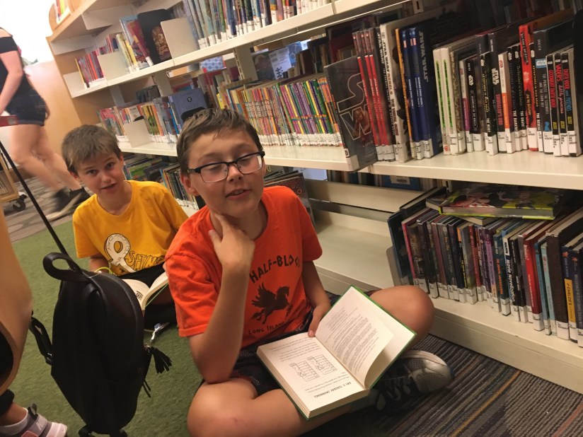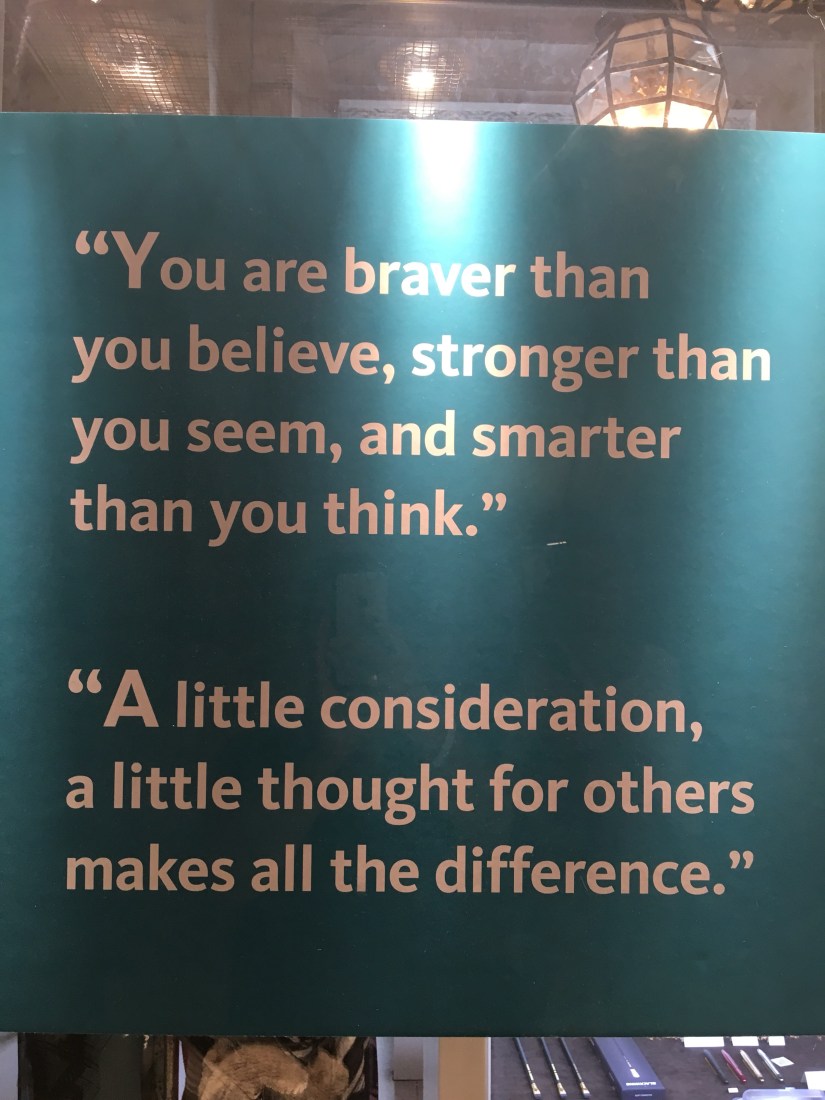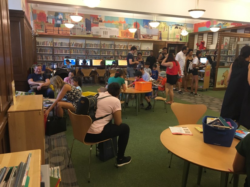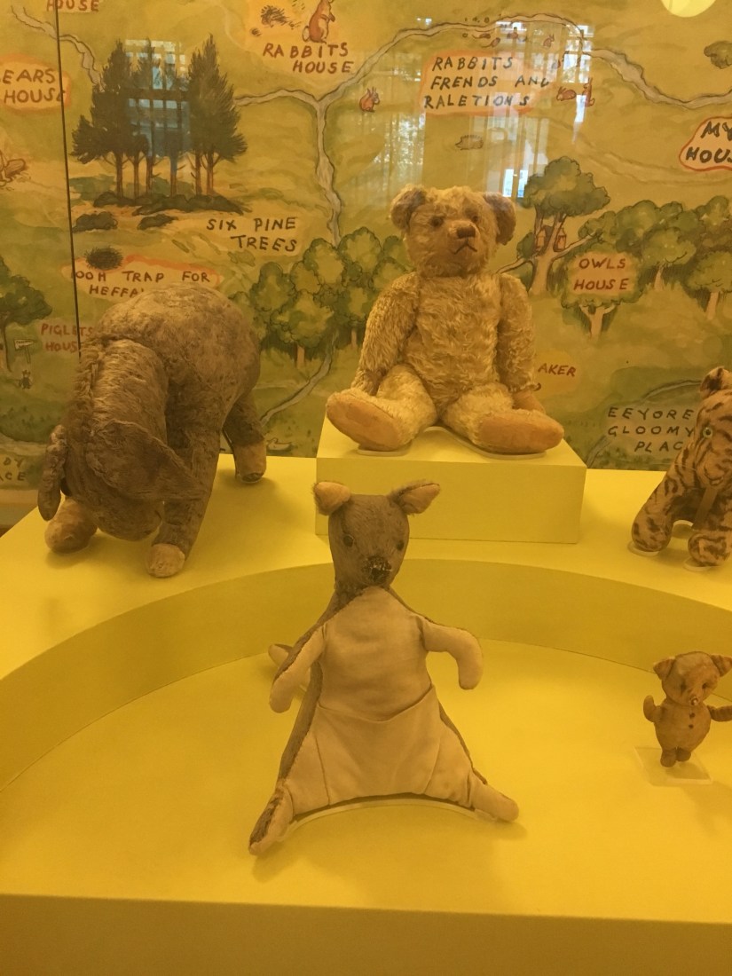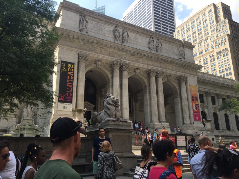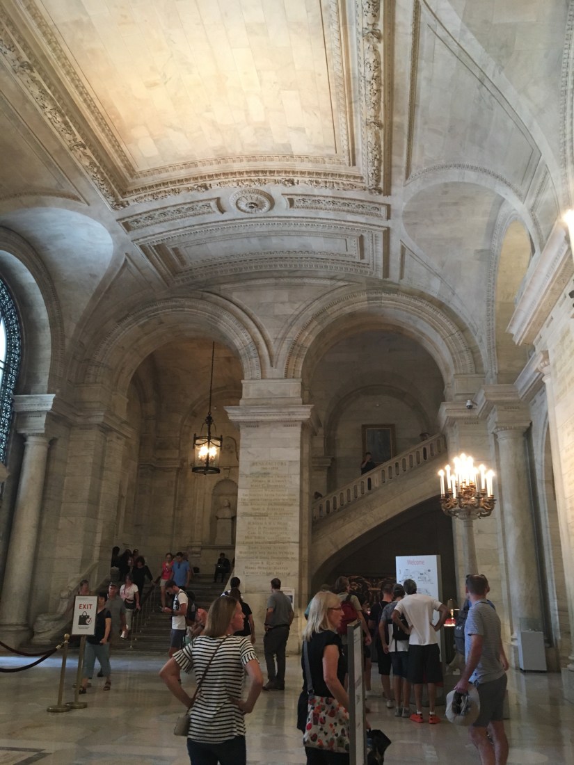 After lunch, we took the subway back up to Midtown and started walking around. We stumbled upon the greatest place ever, the New York Public Library!! Jeff sat and figured out our plan for the day, while I took the boys to the children’s room. We found that the original Winnie-the-Pooh stuffed animal and friends are on display there! Love it! I told the librarian that I was a school librarian and she gave me a (non registered) NYC library card! The boys settled in to their natural habitat and started reading until we finally pulled them away so we could keep going. It was one of the best surprises of the day!