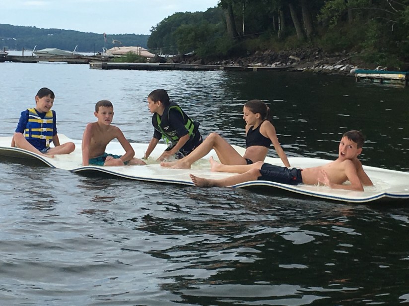 The boys immediately went for a boat ride. Then they went swimming and played with their second cousins that they just met like they have known them forever. 8 kids total, 7 of them are boys. Also 3 of the kids are 12 and 4 of them are 10 and then a seven year old. It’s a hoot listening to them play together.