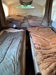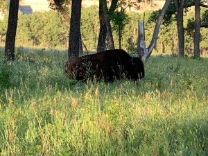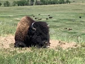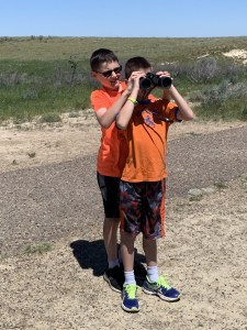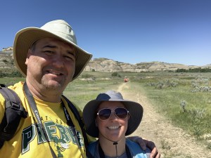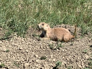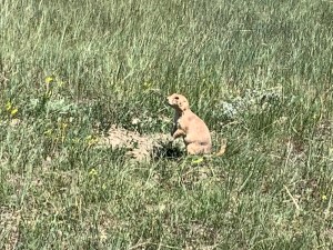 Jeff made a delicious breakfast, then we went into town to get ice. We got back into the Park and drove the Scenic Drive and stopped at all the pullouts. Photos can’t do justice to the layers of the land in the distance. We hiked about a mile out to a prairie dog town, then back to the campsite to relax. The campground host stopped by and visited for at least an hour and we got to play with his cute doggy. Also, Amy went to the ranger talk which was about cowboys and ranching in this area. What a fun day!!