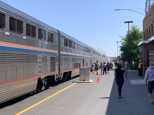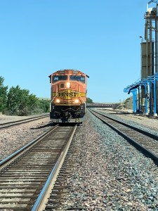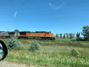 We spent today driving from Theodore Roosevelt National Park to a campground in West Glacier, Montana. 10 hours in the car, mostly driving on Hwy 2. We saw lots of trains today and even got to see the Amtrak arrive in Havre just as we drove through it. So of course Jeff stopped to grab some photos. We made it to the campground about 5:40 and successfully set up the camper on the most uneven campsite ever. Then relaxed and watched the Lodge Pole Pines sway in the breeze.