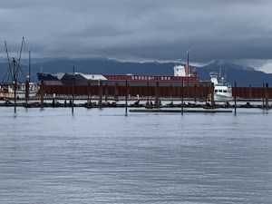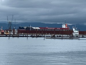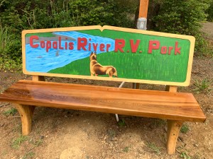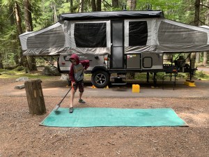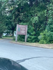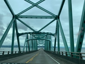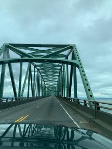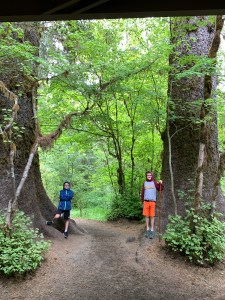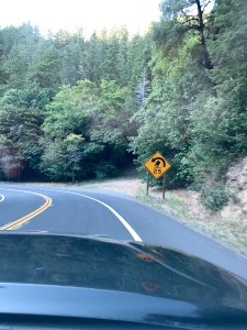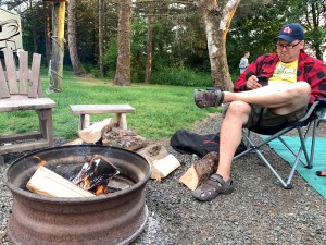 It was a 10 hour drive from our campsite just south of Olympic National Park to our Campsite in Redwood National/State Parks. We planned for one stop in Astoria, Oregon just to see if we could find the House from the movie Goonies. Jeff found the place (had to walk a block because we couldn’t drive and turn around) but it was covered by trees and had lots of no trespassing signs. But he heard sea lions in the distance! So we all got out of the truck a couple blocks away and saw about 50 sea lions on the docks of the Columbia River near the fishing boats. I have some zoomed in photos on my real camera, but you can see them in the photo on here if you squint and use your imagination, LOL. It was a long day with lots of twisty roads that went through beautiful scenery, and we finally made it to our campsite about 8:30 pm. Got our camper set up in record time and relaxed a bit before it got fully dark.