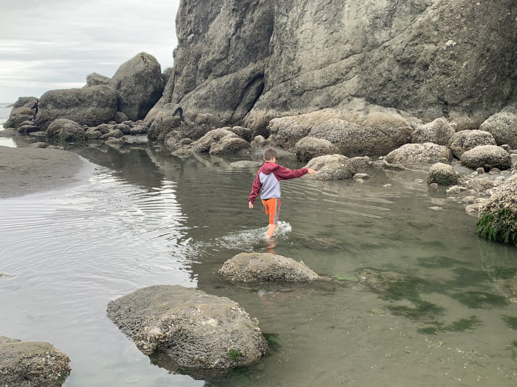 Once we tore ourselves away from the town, we headed to Hoh Rainforest. So much green! Such huge trees! I could have spent days there walking through those giants and taking photos and breathing in all that green. But alas, we had to leave because we wanted to go to Ruby Beach at low tide so we could explore the tide pools there. Jeff and I first discovered Ruby Beach when we were on our first road trip in 2005 and then again a couple years later when we stayed near there for our 10th Anniversary. We all loved climbing around over the huge logs and beach area. Tons more people than there was the previous times we were there, but it was still really cool and the boys loved it too.