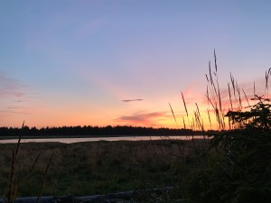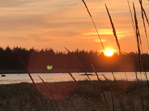 We only had a few hours of driving to get to the campsite on the coast, so we leisurely packed up and got moving around 11:30. A pretty drive of course. We got a full hook-up at this campground, and they had WiFi and most importantly, showers! We were right by a path that led directly to a tidal inlet. Carson and I explored it after we all got set up (Spencer and Jeff read their books). And I kept going back to take photos of the amazing sunset.