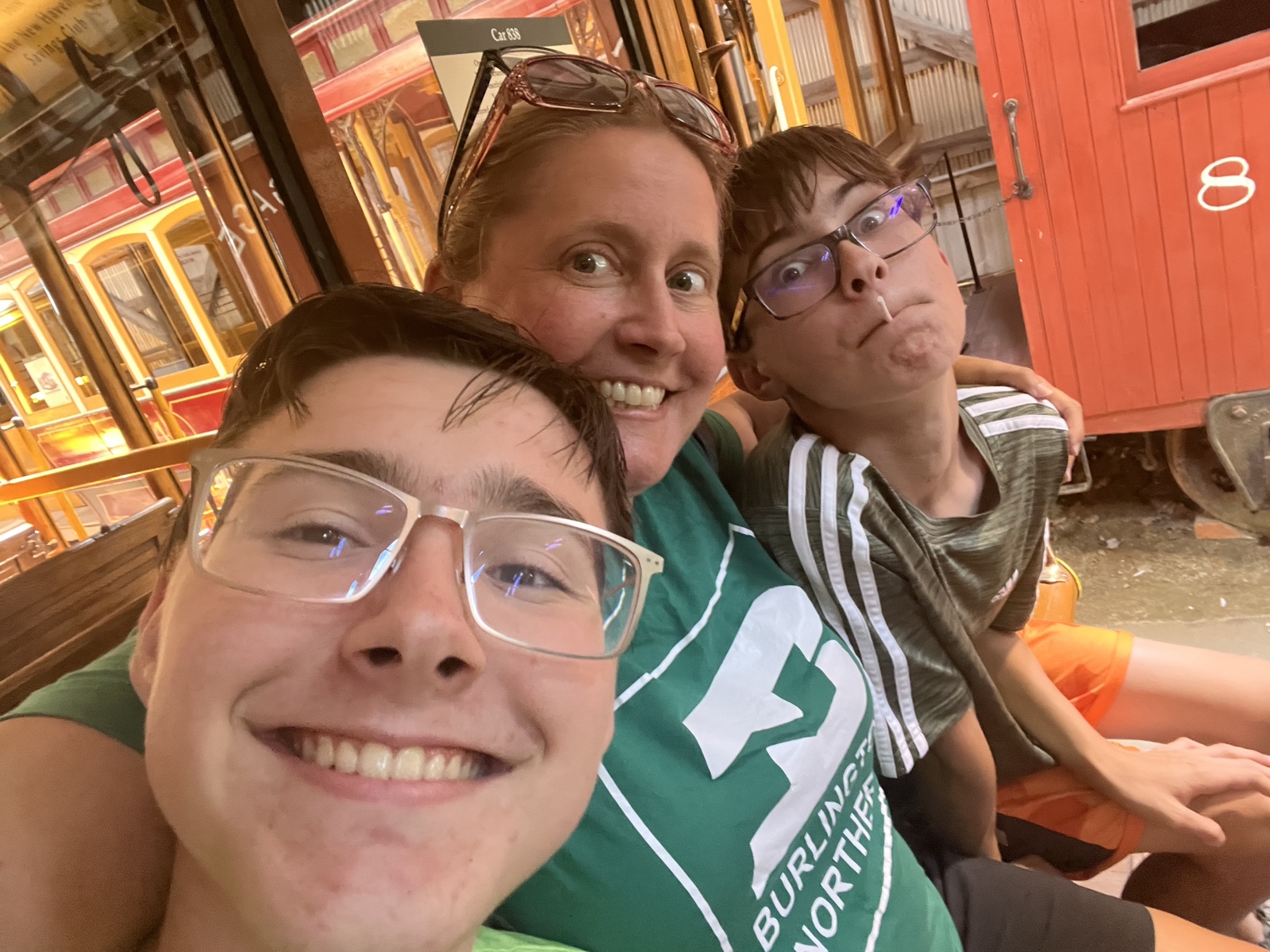On Wednesday, the four of us and Grandpa went to the Seashore Trolley Museum where we saw many restored trollies from towns across the world. We took a Trolley ride to a “Trolley Park”, which were parks outside of the city that trolley companies built in order to entice people to ride on Sundays when they were off work. Many of these parks later developed into the Amusement Parks we know today.