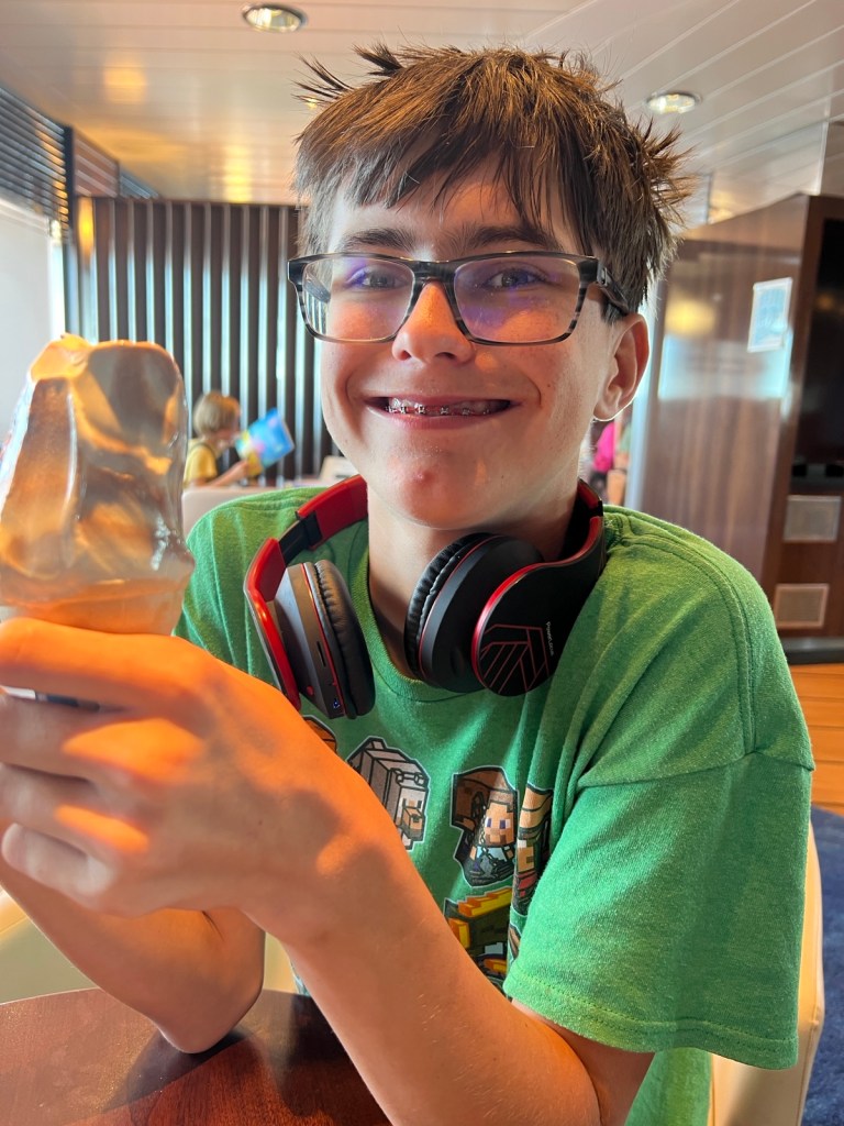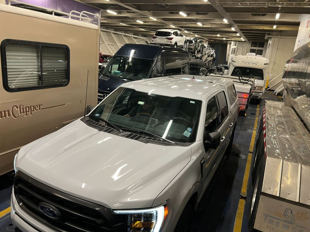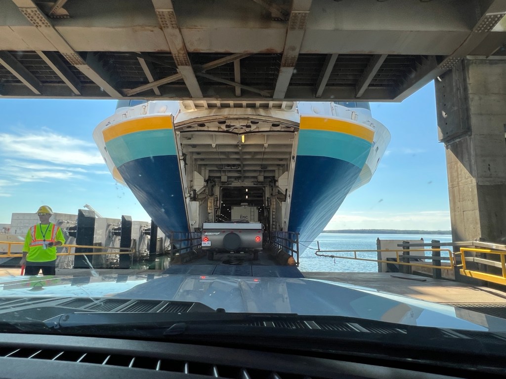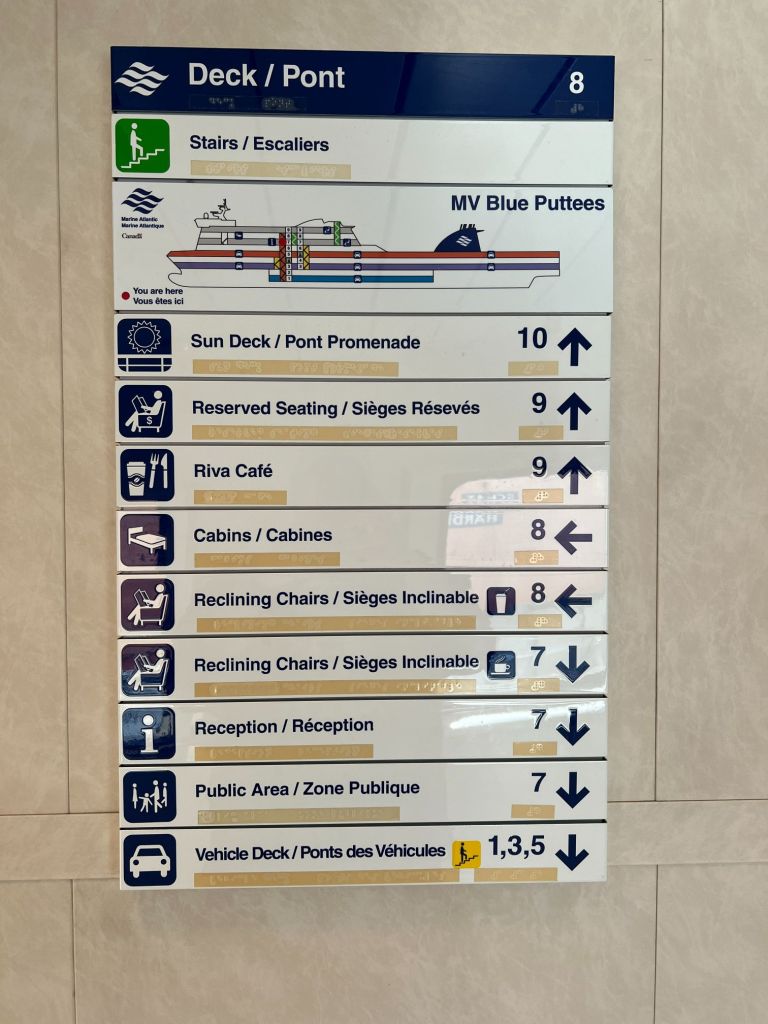 Canada uses the Metric System, so we needed a cheat sheet!The name of this chicken restaurant cracked me up.Waiting in line to load the truck into the ferry.The boys played Mario Cart on the Nintendo SwitchThere are lifeboats and we had to watch a video.There is a helipad, but we don’t think it got used on our trip.Carson loves ice cream.See those little splashes? Dolphins!We crossed from Sydney to Channel-Port aux Basques.Seating is so much roomier than an airplane.Newfoundland is 2.5 hours ahead of Green Bay.We made it!