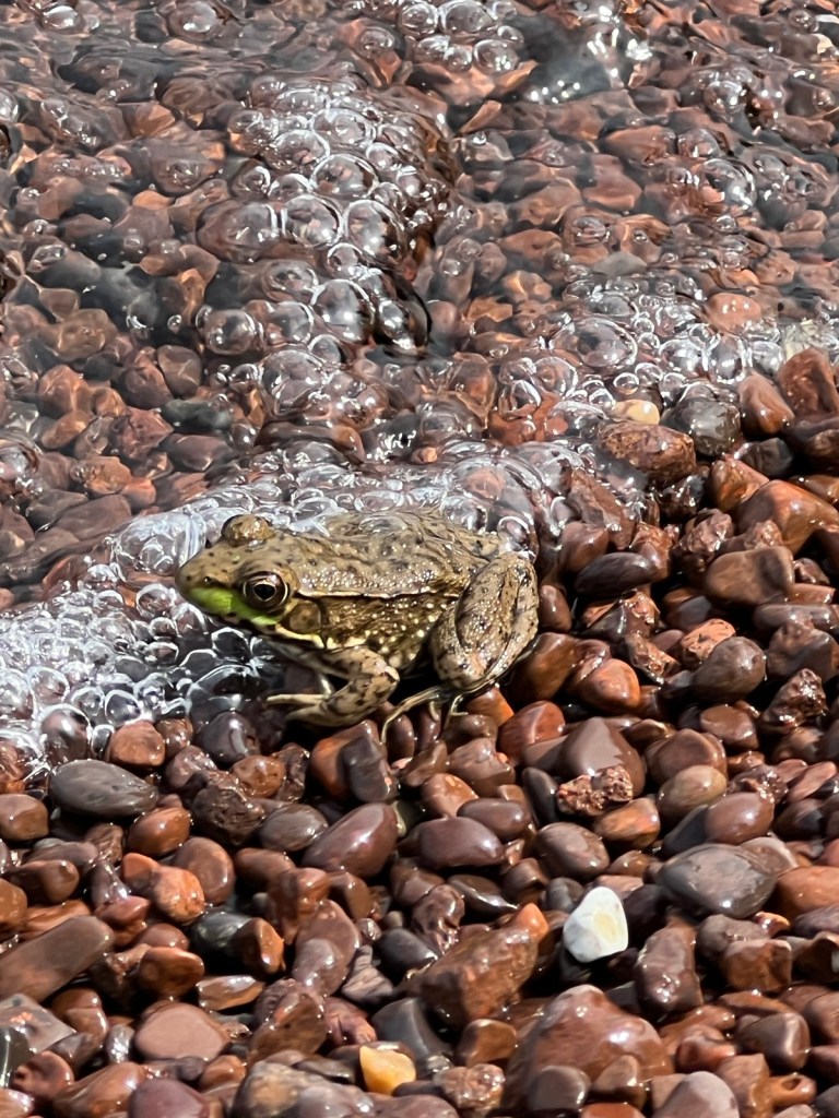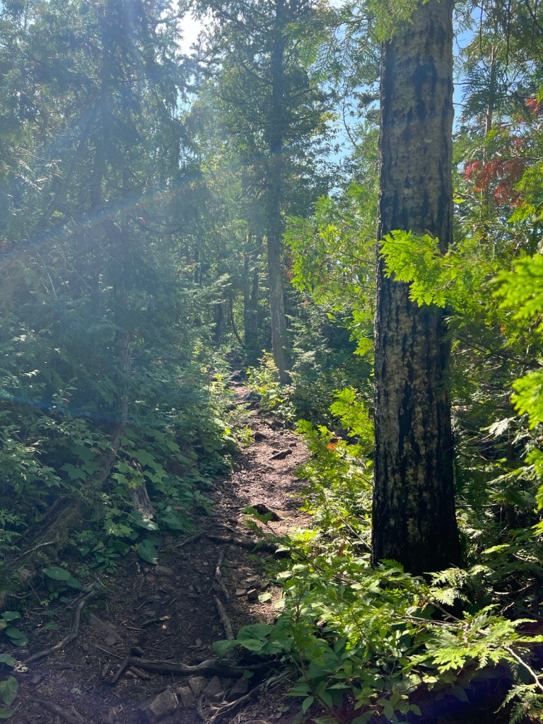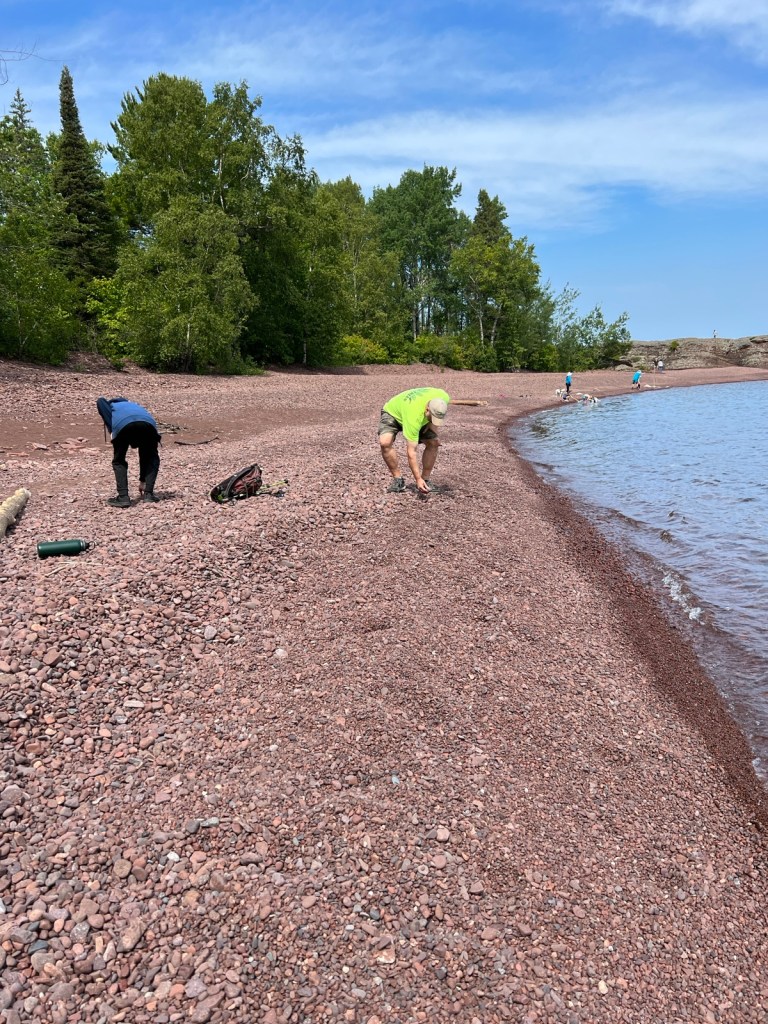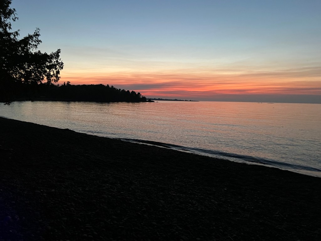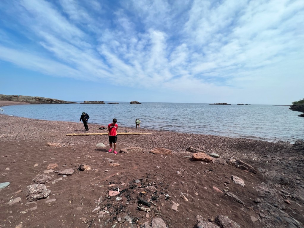 We walked to the trail from our campsite and followed it around to the beach very near the end of the Keweenaw Peninsula. We zoomed in our cameras to take pictures of the Copper Harbor Lighthouse (you have to take a boat cruise to get up close to it). The beach was all rocks and pebbles so we all had fun trying out the Rock Identifier App to find out the kids of cool rocks we were finding. A lot of it was basalt, but we also found different kinds of jaspers, sandstone, rhyolite, and a few agates.