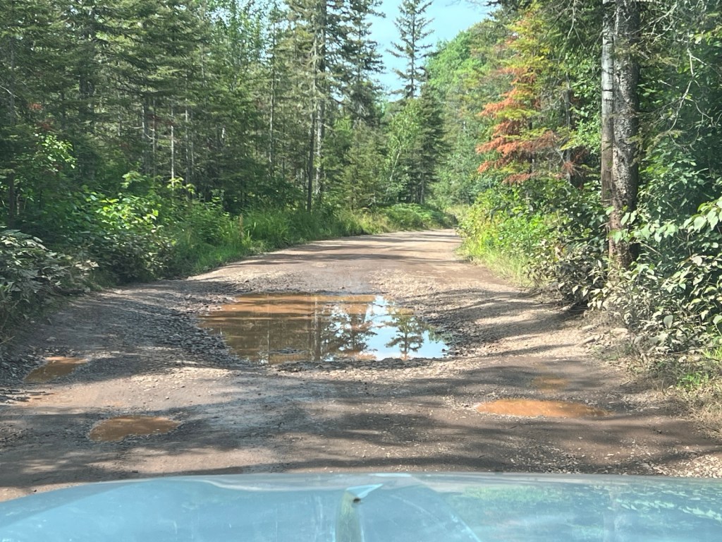 The campground is very near the very end of Highway 41, which is at the tip of the Keweenaw Peninsula, so we decided to get a photo of it. There was a dirt road that continued on for about a couple miles, and then a dirt trail that went on for another 1/2 mile. It ended up at a rocky beach with great rocks and fun stone skipping.