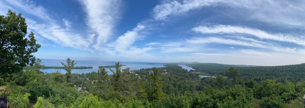 The drive is beautiful and when you get to the top, the view is breathtaking in all directions. as you come down, you arrive in Eagle Harbor and we discovered Hunter’s Point Park to hike in that followed an isthmus around to the wide open lake. A great hike!