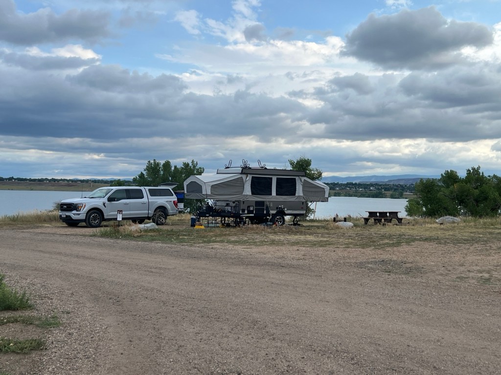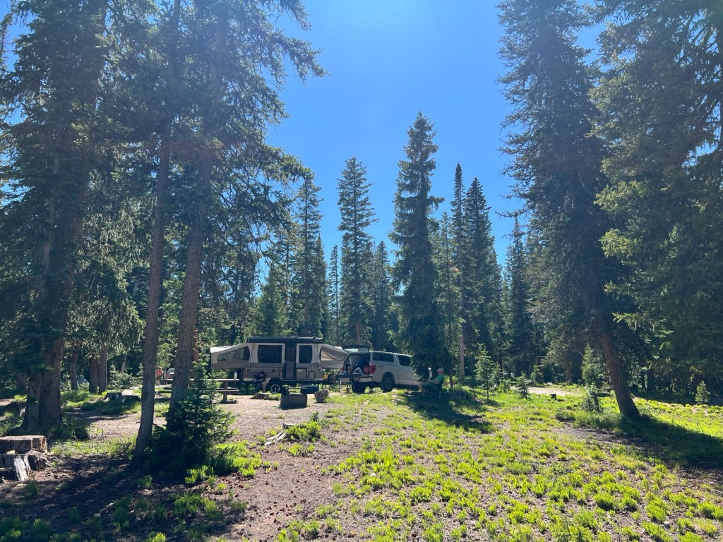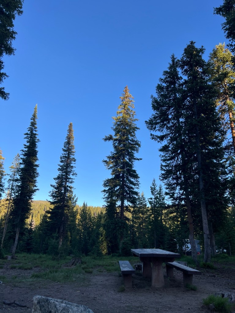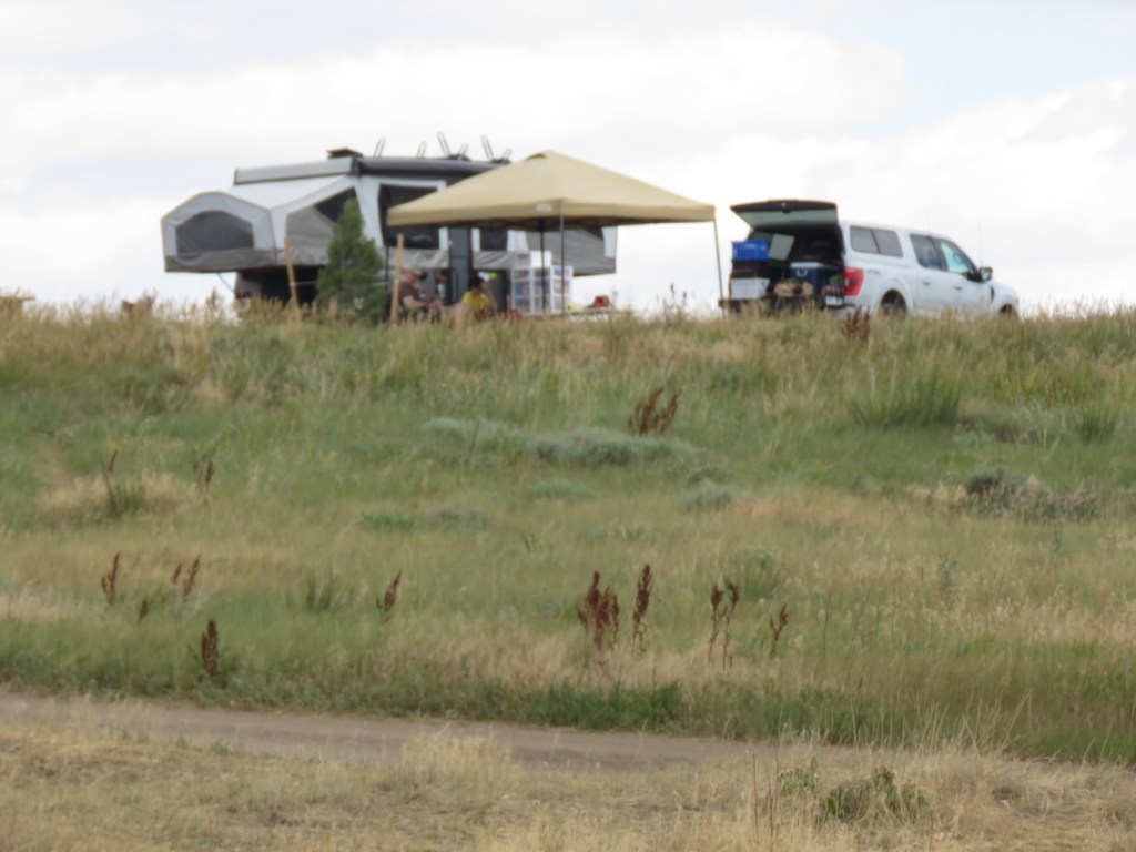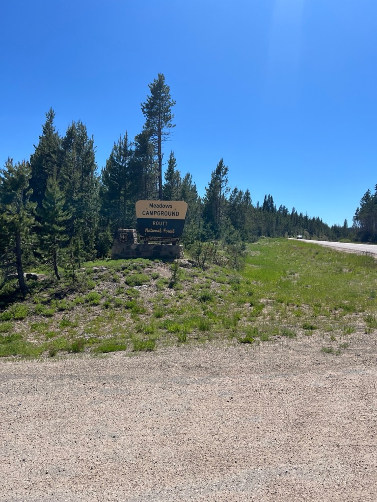 The campsite at Meadows Campground in the National Forest is huge. Very rustic in that there is no water or electrical hookup, but that’s not a problem for us. Jeff just charges the camper battery during the day with the solar panels and we filled the water tank before we left the previous campground. We also have a tiny bathroom in the camper so don’t have to deal with smelly outhouses.