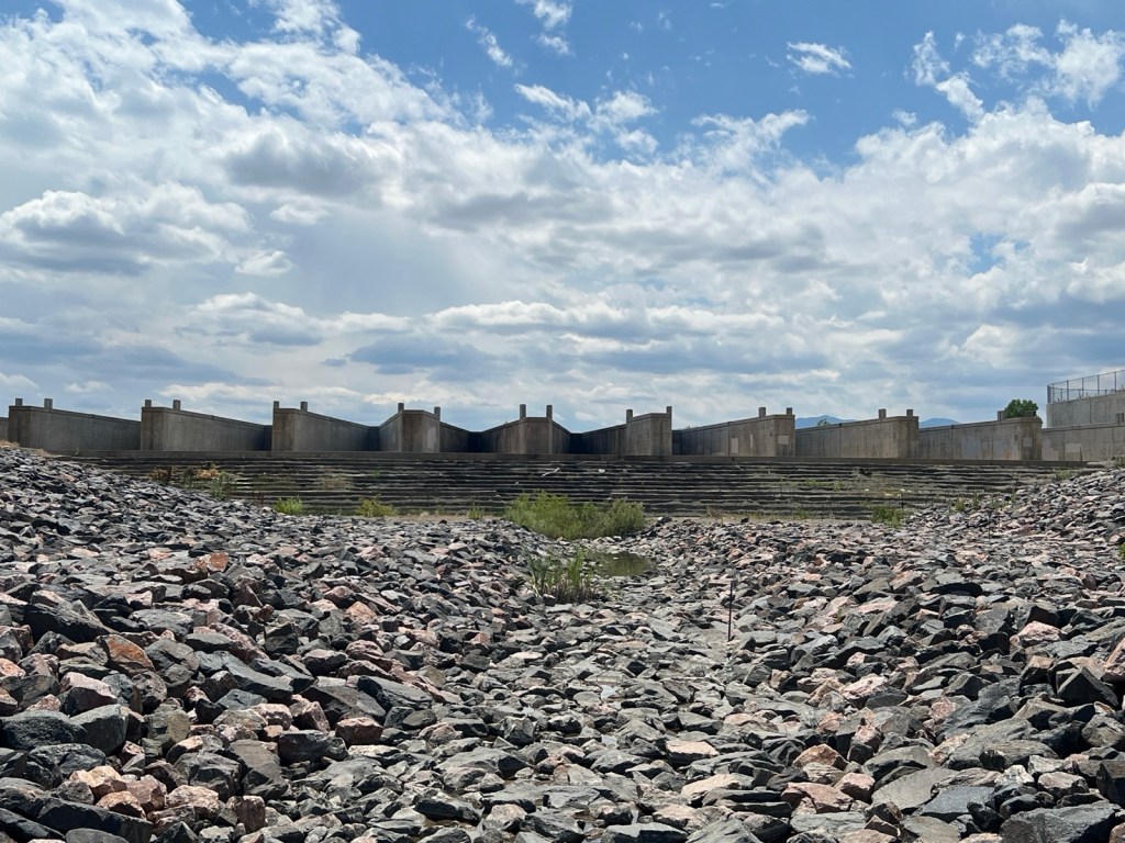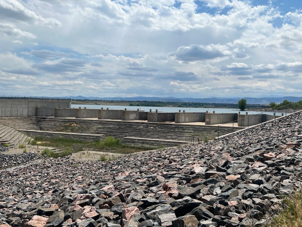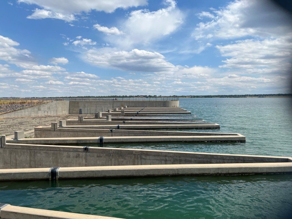 Jeff set up his solar panels and charged the camper and all our electronics and then he took a walk over to the dam that keeps the reservoir full of water. He took some pictures above and below the dam as he stood in the spillway. They have gotten more rain here than last year but have no worries about flooding or anything.