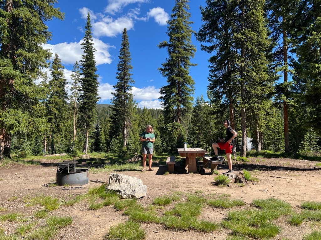 Jeff went into town in the morning to get me more tissues and also a Covid test and some Orange Juice. The test result was negative!! Hurray! Our trip can go on mostly as planned. I did sleep most of the afternoon after going in to Steamboat Springs town to eat lunch. We were going to go on a big hike, but decided to just lay low in the shade at the campsite.
